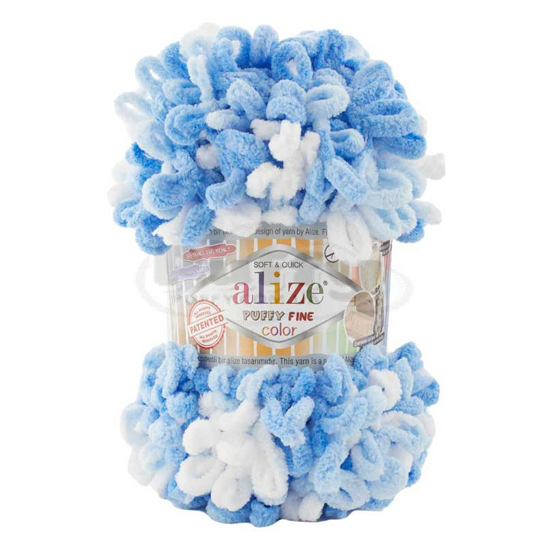 Плюшева фантазійна пряжа Alize Puffy Fine Color - це різнобарвна, дуже м'яка і приємна на дотик дитяча пряжа секційного фарбування для в'язання руками без спиць. Цей представник сімейства пряжі Пуфі має ниточку, як у Alize Puffy Fine, але забарвлену секційно з переходами кольорів. Догляд за виробами традиційний, як і для всього сімейства Алізе Пуфі.